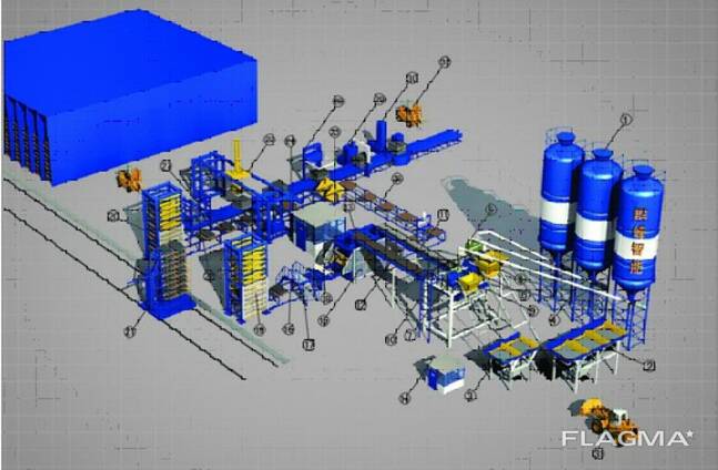 Полностью автоматическая поточная линия модели QFT 10-15 для производства тротуарной плитки, бордюров (дорожного и тротуарного), блоков бетонных и блоков полистиролбетона методом вибропрессования.