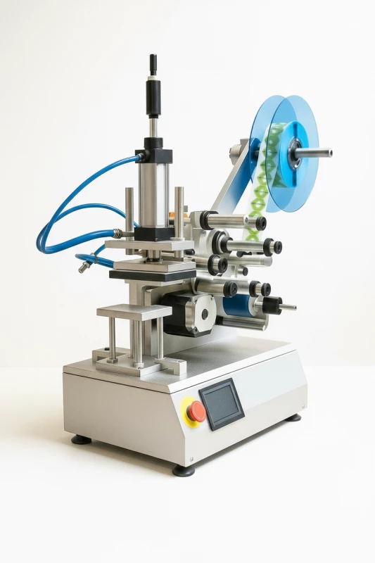 "Оснащен функцией воздушного всасывания и предназначен для нанесения этикеток на различные изделия, включая плоские бутылки, пробирки, флаконы, косметические тары, палочки, крышки и многое другое.